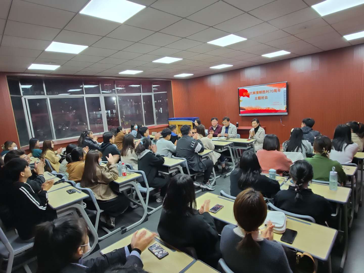 随后,翟彦民处长带领大家回顾抗美援朝历史,分析当今我国的发展现状和国际政治形势,并引用习近平总书记在纪念抗美援朝70周年大会时的讲话,激励同学们学习抗美援朝精神的内在精髓,永远保持危机意识,练就过硬本领,建设美好祖国。