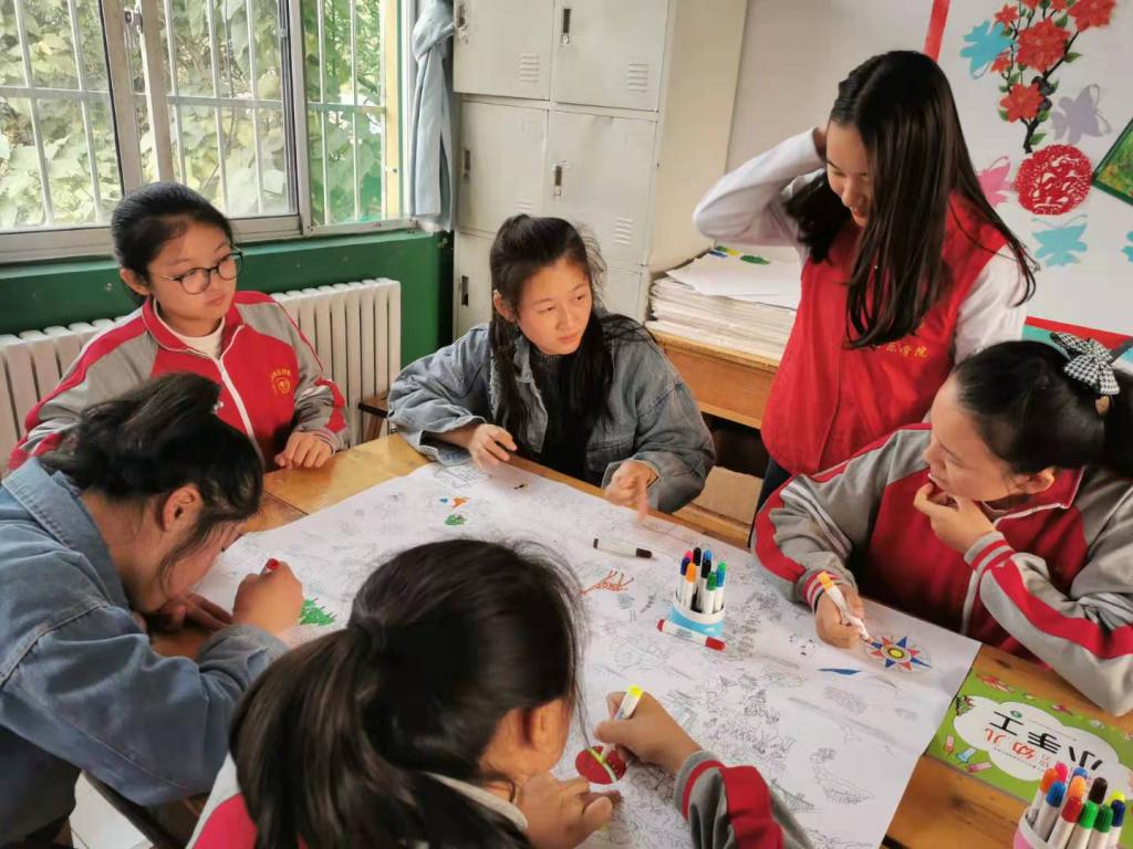 团员们分组为不同班级的孩子们授课。活动过程中,团员们热情地同孩子们进行互动,耐心地指导他们音乐、绘画、游戏等,慢慢掌握了和孩子相处沟通方式,课堂氛围逐渐活跃起来。本次活动留给孩子们的是温暖和梦想,团员们带走的是感动和信仰。
