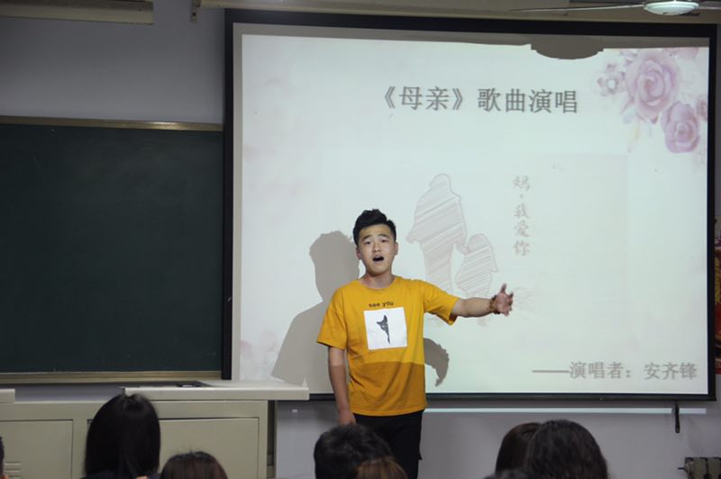 在了解了母亲节的来历与传统后,学生代表安齐锋为学生家长代表演唱了歌曲《母亲》,现场掌声响起,和着节拍,伴着感动。一段“你养我长大,我陪您变老”的沙画视频带领学生们重温了母亲陪伴成长的点点滴滴。随后全场起立合唱《时间都去哪儿了》,动情的旋律唤起了大家深埋心底的声音,情到浓时泪自流,许多学生唱到哽咽。