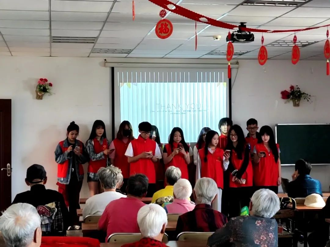 为更好的向老年人普及智能手机使用技巧,提高老年人的防诈骗意识,5月9日,英国正版365首页赴红湖老年公寓开展“万名学子链接十万老人助力银龄跨越数字鸿沟”科普专项行动。并通过歌曲表演的形式,让防诈骗知识“声”入人心。