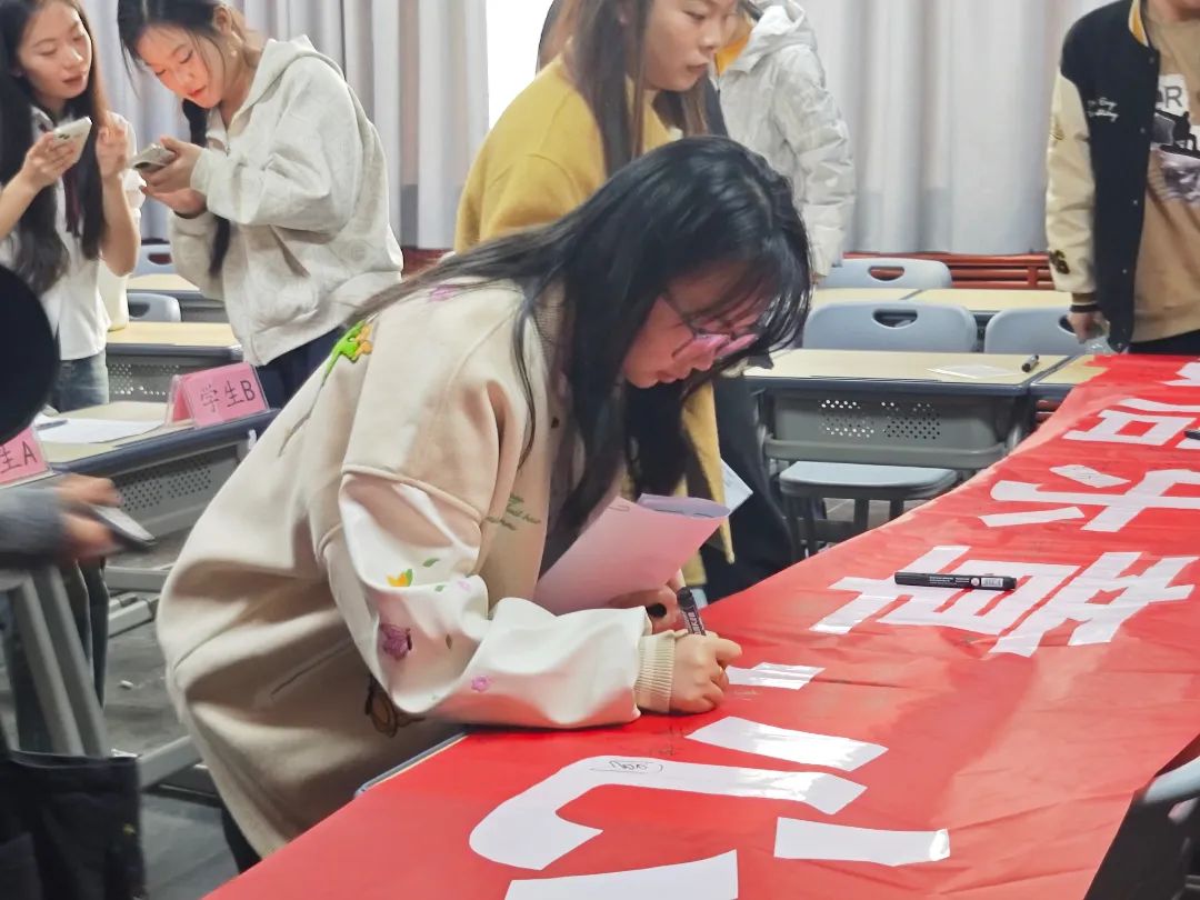 活动尾声,陈老师以“诚信是音乐人最美的和声”作结,强调“从考场到舞台,从作业到人生,诚信永远是必选项”。会后,全体同学在红色横幅上郑重签下自己的名字,以实际行动立下诚信誓言,并合影留念。