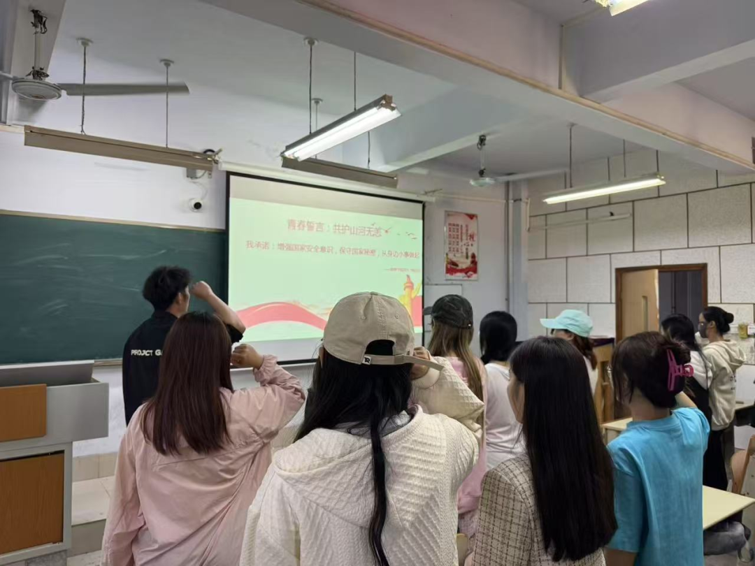 在宣誓环节,全体学生高举右拳,以“增强国家安全意识,保守国家秘密,从身边小事做起。”的誓言表达维护国家安全的坚定决心。誓词字字铿锵,彰显新时代青年的使命担当。