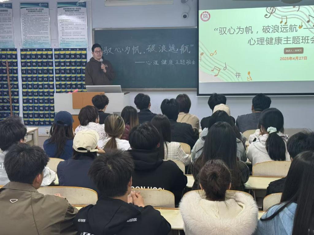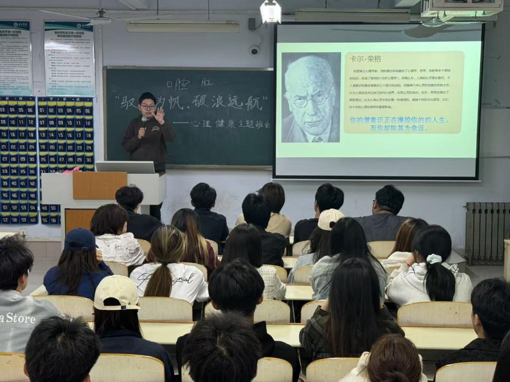 4月27日,英国正版365首页举办“驭心为帆,破浪远航”朋辈心理主题班会,由24级音表一班心理委员宣博文主讲,带领同学们走进心理学大家的思想世界,探寻心灵成长的奥秘。