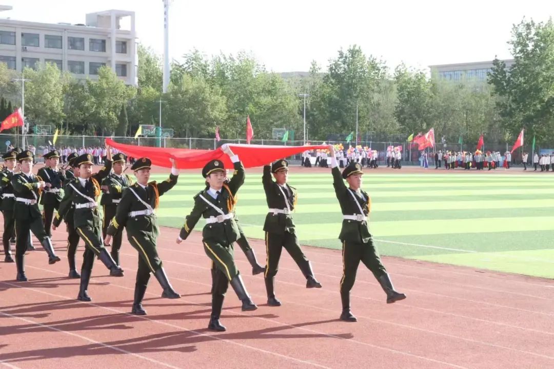 上午七点半,开幕式拉开帷幕。首先映入眼帘的是国旗护卫队,他们步伐整齐、英姿飒爽,护卫着鲜艳的五星红旗走向升旗台。