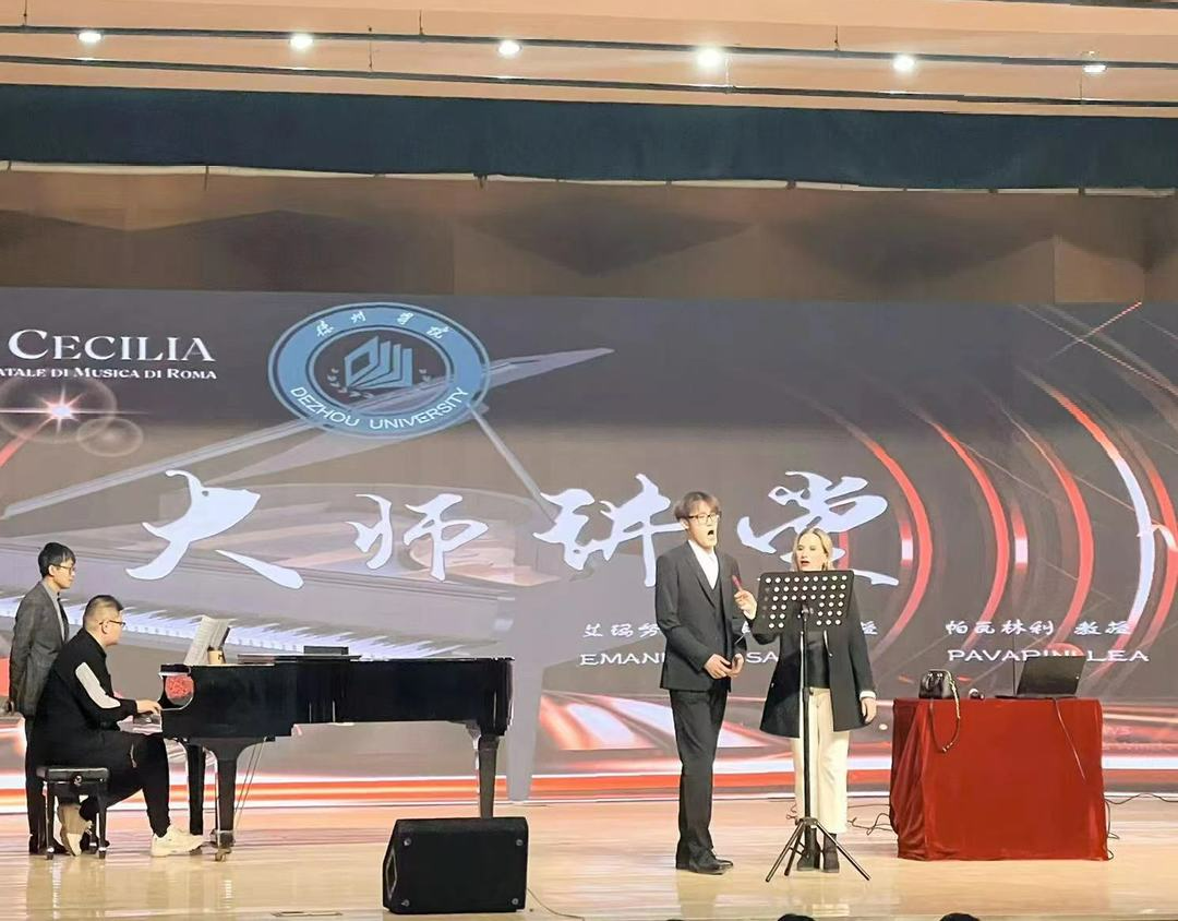 大师课环节更是将此次活动推向了高潮。萨卢奇教授和帕瓦林利教授亲自登台,为我院大三大四的声乐和钢琴专业学生提供指导。他们不仅对学生们扎实的音乐基础表示赞赏,还用自己的意大利音乐教学方式,结合丰富的表演经验,对学生们的演奏和演唱进行了细致的点评与指导。从演奏技巧、呼吸控制到发声技巧和意大利语发音,教授们都给予了学生宝贵的建议,并通过亲身示范帮助学生更好地领悟音乐的精髓。