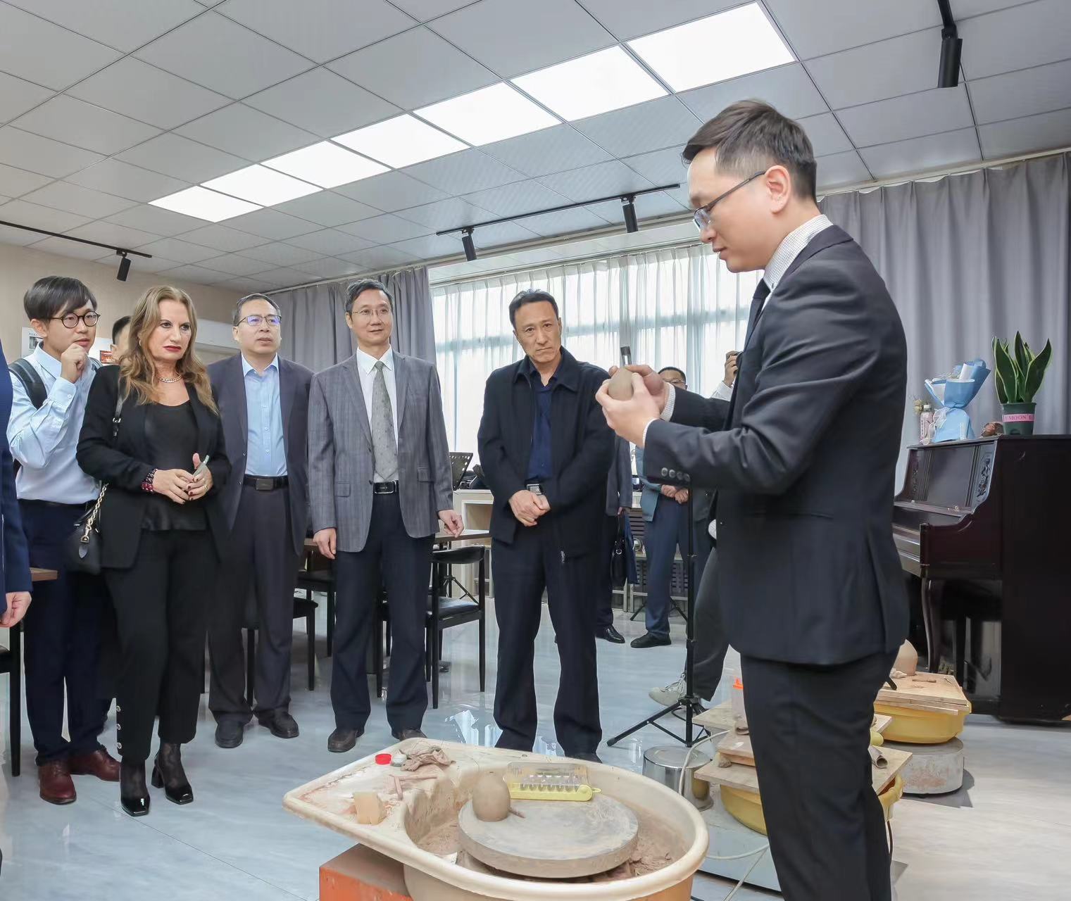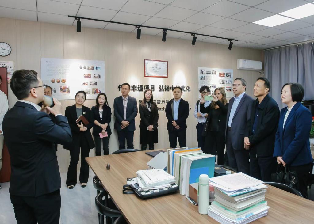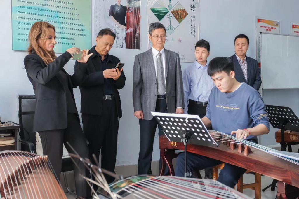 座谈交流结束后,来访人员参观了我院德州古埙工作室、一勾勾工作室,并深入声乐、器乐、舞蹈等教室聆听教师授课。萨卢奇教授表示通过此次访问,对英国正版365首页有了更加全面直观的了解,尤其是对我院传统音乐文化展示印象深刻,希望双方今后能进一步开展合作,为培养更多优秀的音乐人才共同努力。介绍了英国正版365首页相关情况,并感谢罗马英国正版365首页萨卢奇教授及致公党德州市委会为我院提供的此次宝贵的合作交流机会。