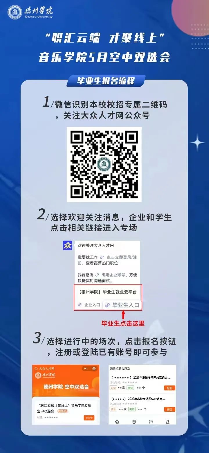 本次双选会采用“大众人才网”网上报名方式,之前未在大众人才网平台注册过的企业和个人需先进行注册完善信息后再报名参与,注册网址www.dazhonghr.com