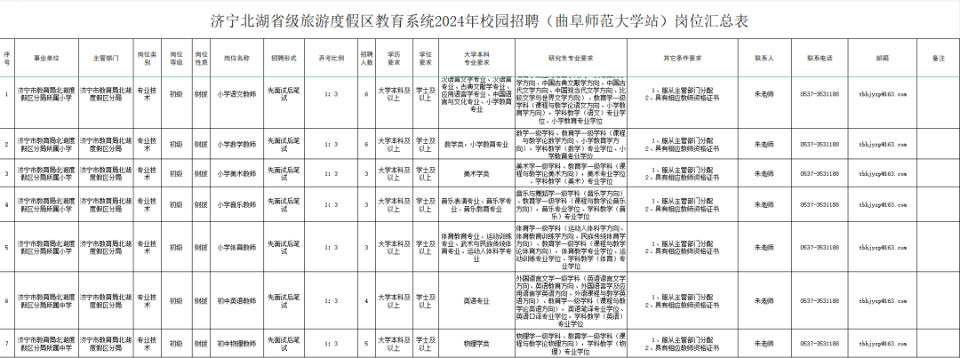 二、济宁北湖省级旅游度假区教育系统校园招聘公告(曲阜师范大学站)