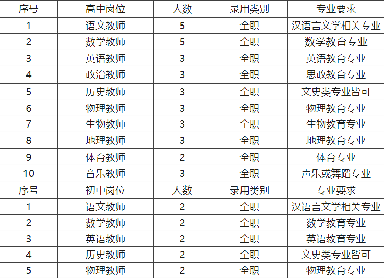 (6)须于2024年8月31日前取得相应中小学教师资格证书,未按时取得的解除聘用资格,所学专业符合应聘岗位要求,具备岗位计划表中规定的岗位条件;