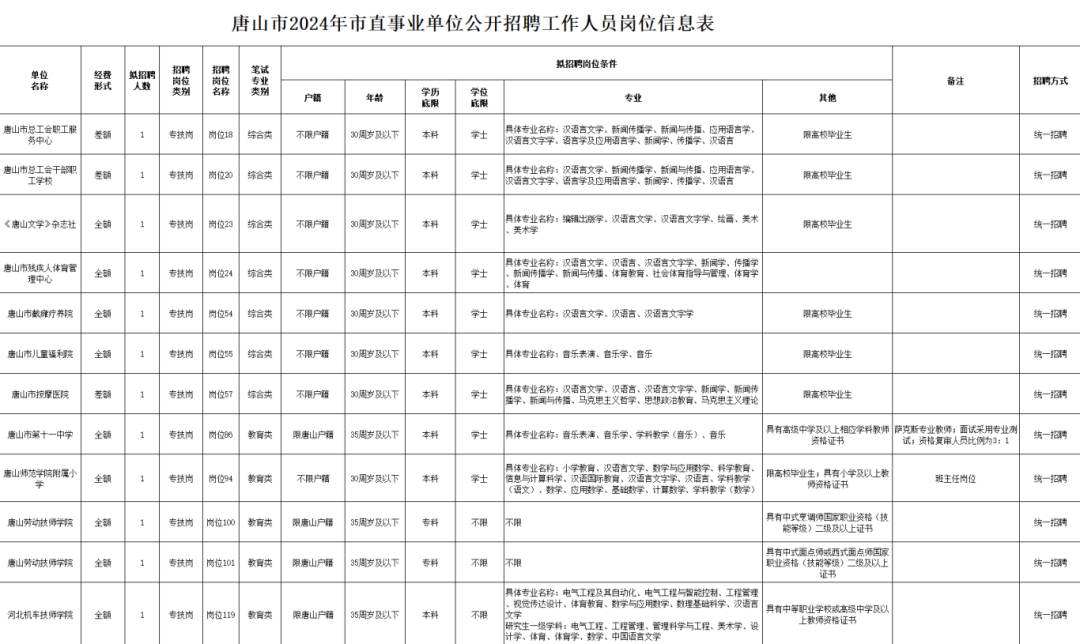 唐山市2024年市直事业单位公开招聘工作人员公告