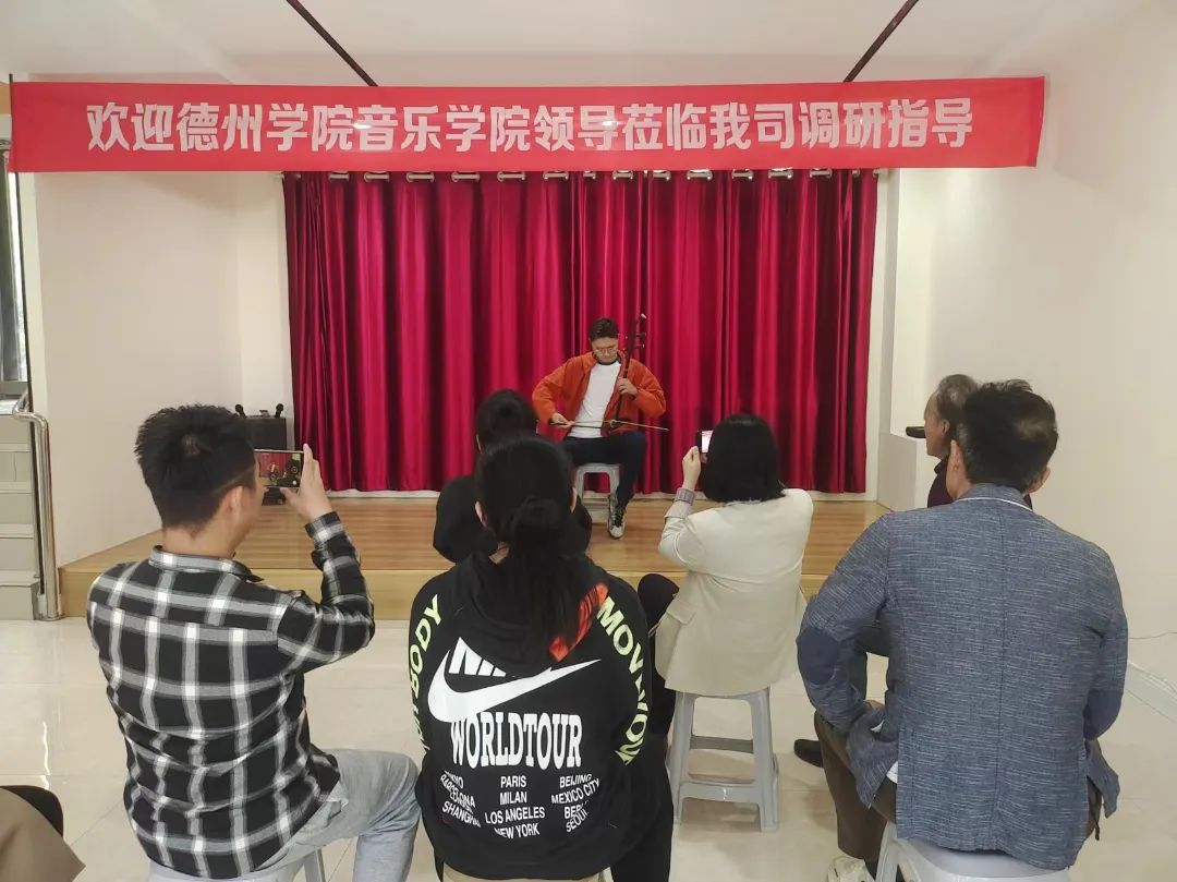 企业负责人李玥君对我院一行人员的到访表示热烈欢迎,双方围绕就业基地建设、传统乐器二胡人才的培养、民族文化的传承以及毕业生就业优选等方面进行座谈。随后,共同参观校区建设、聆听企业发展愿景,观看毕业生代表、双方教师代表、联合曲艺演奏等技能展示。一致表示,将以本次访企拓岗促就业专项行动为契机,加强专业领域多维联动,促进专业人才双向交流,为更多优秀毕业生搭建就业创业的高质量平台。最后,双方共同签订就业基地协议,并为就业基地挂牌。