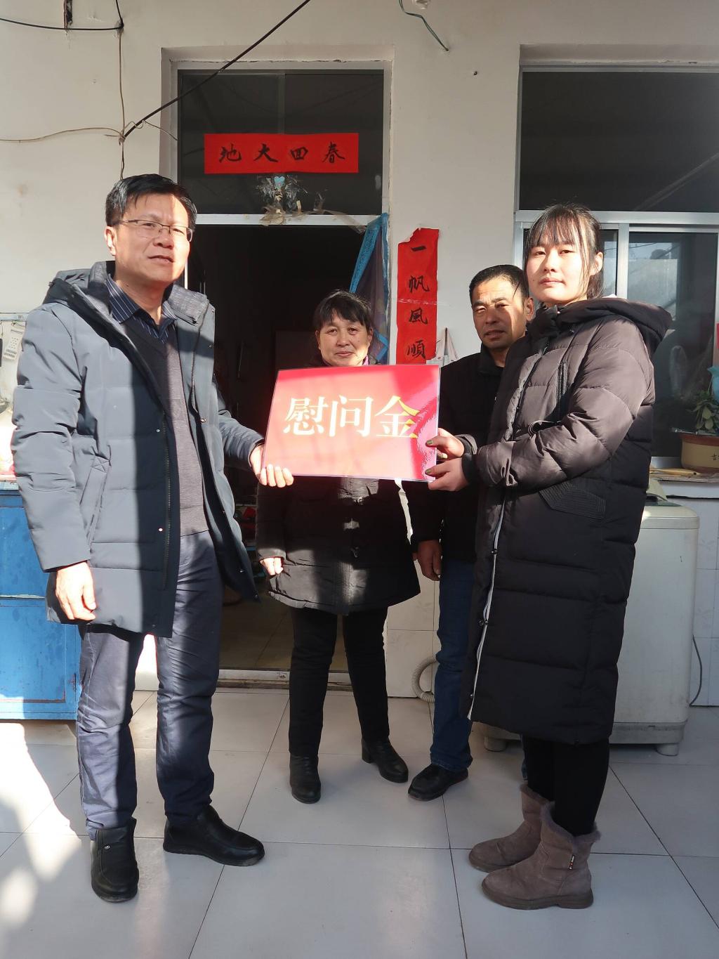 1月8日,英国正版365首页党总支书记刘志华等人驱车前往临邑县天一村,在寒潮天气里,给2019级家庭困难学生,送去冬日里的温暖。