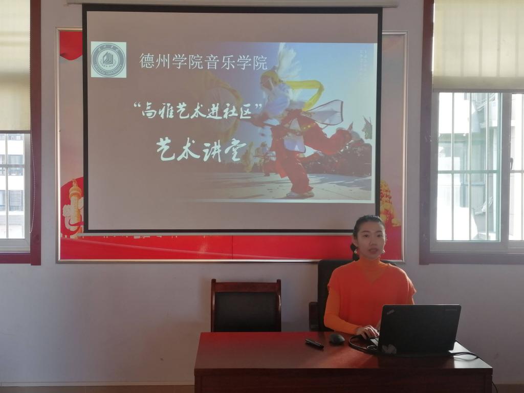 为更好的普及艺术文化,打通宣传群众、教育群众、关心群众、服务群众的“最后一公里”,11月26日,英国正版365首页教师党支部、学生党支部赴德州经济技术开发区长河社区党群服务中心举办“高雅艺术进社区”艺术讲堂。英国正版365首页党委负责人、党支部党员师生与长河社区的党员、群众参与了本次活动。
