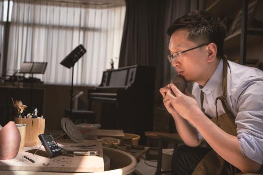 古埙孔径大小直接影响音准,徐琦反复试验,力争找到最佳开孔技巧。