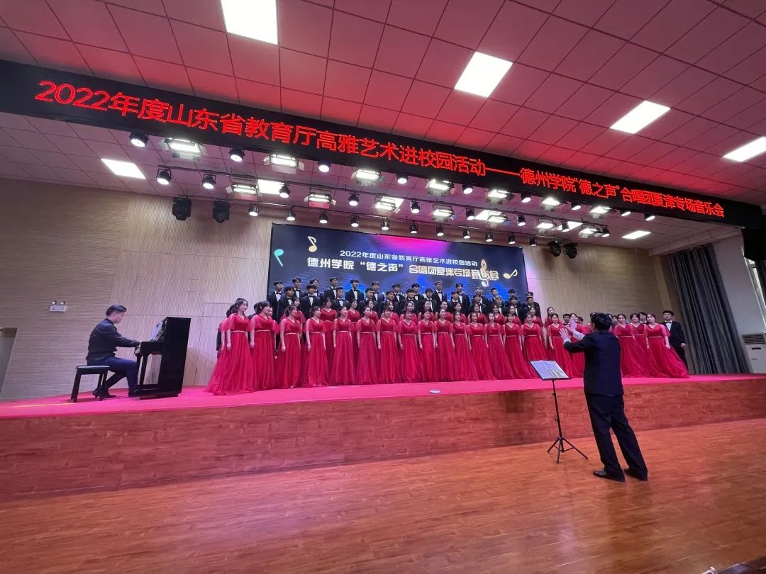 高雅艺术进校园是一项高雅艺术活动形式,目的是为了通过多层次的艺术领域,向不同地区不同校园宣扬高雅艺术,以提高学生审美修养及综合能力。“德之声”合唱团积极响应号召,让更多的学生认识合唱,了解合唱。