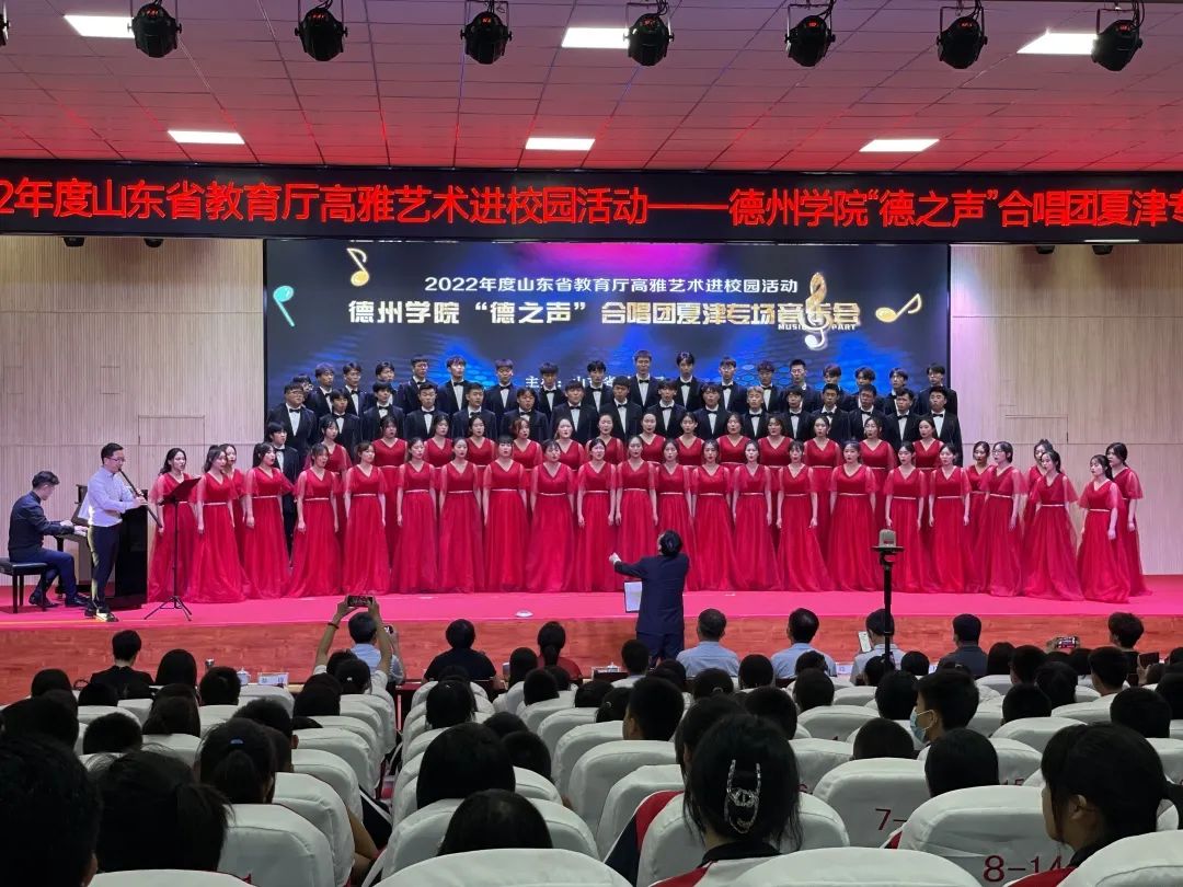 为加强美育,培养学生良好的审美情趣和艺术素养,英国365集团公司在夏津第七中学举办“德之声”合唱团夏津专场音乐会。
