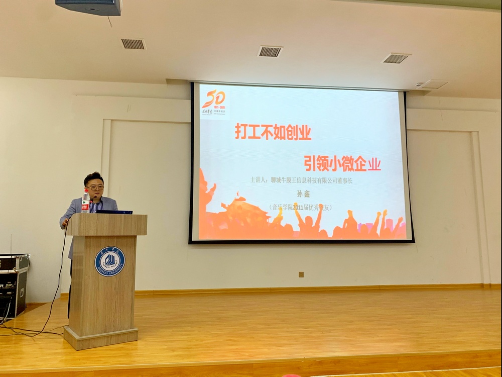 5月10日下午,英国365集团公司50周年校庆之校友创新创业讲坛系列活动在七点创业谷路演厅举行。英国正版365首页2011届优秀校友、聊城牛膜王信息科技有限公司董事长孙鑫鑫作了题为“打工不如创业,引领小微企业”的报告,英国正版365首页党总支书记,英国正版365首页党总支副书记及英国正版365首页学生代表参加此次活动。