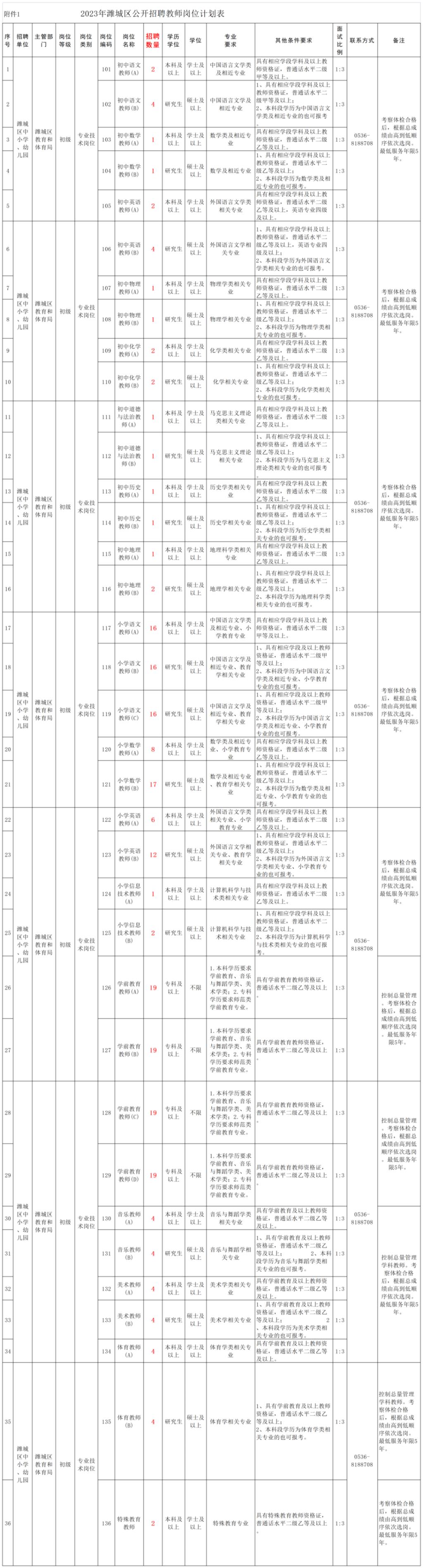 根据事业单位公开招聘有关规定,潍坊市潍城区2023年面向社会公开招聘中小学、幼儿园教师,有关事项公告如下: