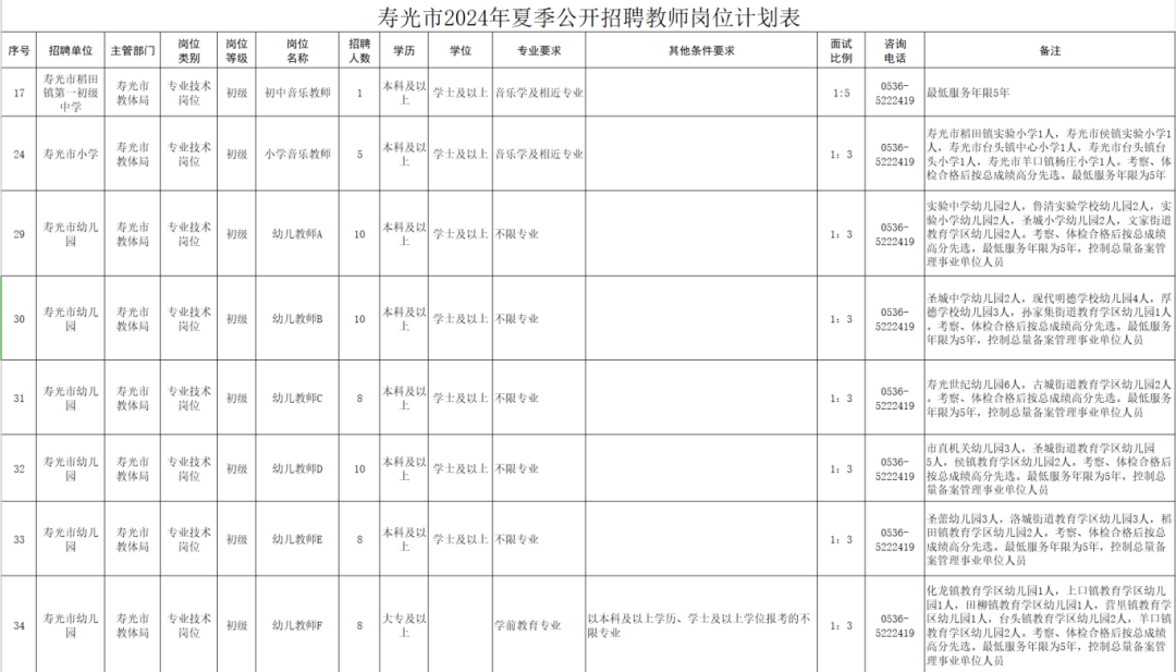 2024年潍坊寿光市夏季公开招聘教师公告