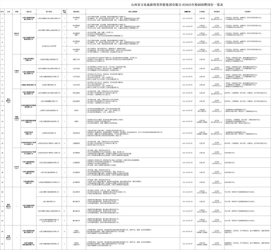(六)具体专业要求、岗位要求等招聘资格条件,详见附件《山西省文化旅游投资控股集团有限公司2025年校园招聘岗位一览表》。