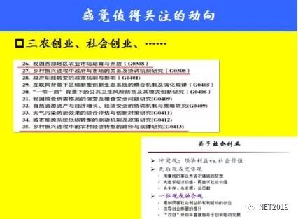 第三,三农创业、社会创业。有民宿的住宿价格已经超过城市五星级酒店的价格,就是乡村创业、三农创业兴起的信号。今年国家自然科学基金重点课题指南中,将三农问题纳入资助范围的课题数量大幅度增加。这不仅是国家大力推动乡村振兴、精准扶贫、农民工返乡创业等政策结果,也是经济、社会发展到一定阶段的产物。但是三农(农村、农民、农业)创业一定要考虑改革开放40年的发展基础,要多考虑三农创业的独特性和关键所在。